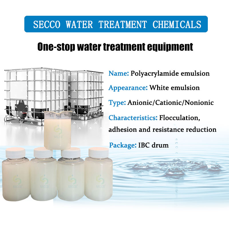 Το γαλάκτωμα πολυακρυλαμιδίου παρασκευάζεται με διασπορά ή αντιστροφή πολυμεροποίηση γαλάκτωμα, η οποία είναι μια μορφή υγρού πολυακρυλαμιδίου που υπάρχει. Εκτός από τα χαρακτηριστικά των στερεών polyacrylamide flocculants, μέσω της μοριακής αλυσίδας των πολικών ομάδων για να απορροφήσει αναρτημένα στερεά συστατικά στα σωματίδια νερού, το γαλάκτωμα θα μπορούσε να διαμορφώσει τα μεγάλα σμήνη μέσω γέφυρας μεταξύ των σωματιδίων ή της ηλεκτρικής ενέργειας.
