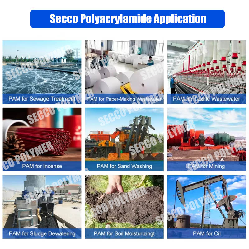 Το πολυακρυλαμίδιο (PAM) είναι ένα γραμμικό πολυμερές, ο χημικός τύπος είναι (C3H5NO) N. Είναι ένα σκληρό γυαλινό στερεό σε θερμοκρασία δωματίου. Τα προϊόντα είναι υγρή κόλλα, λατέξ και σωματίδια λευκής σκόνης. ..